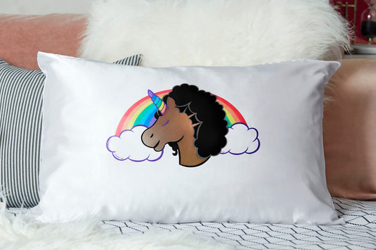 My Curly Unicorn (Black Hair) - Luxury Satin Pillowcase